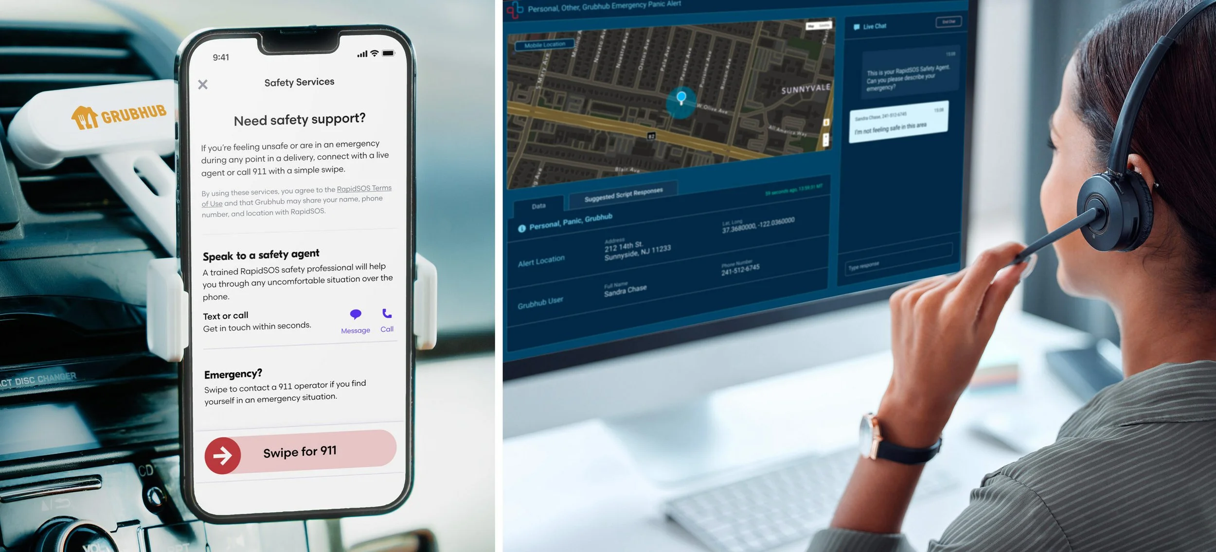 “In collaboration with RapidSOS, the Grubhub for Drivers App will now digitally route critical data to the nearest 911 center. It does so via three new features that are accessible to delivery partners when they hit the SOS Button in the Safety Services section: 911 Slider, Safety Agent Call, and Safety Agent Text. With just one tap, Grubhub Delivery Partners are connected to emergency assistance by voice or text message.” - Grubhub news letter